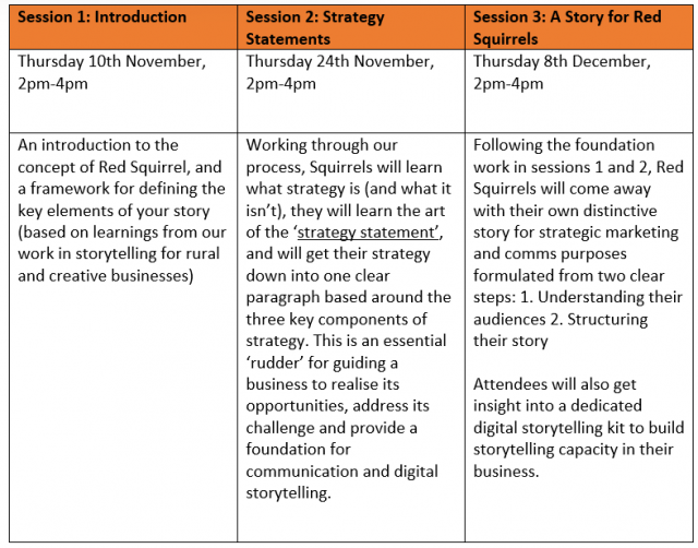 So, why all this talk of squirrels and how does it relate to business? Red Squirrel is a metaphor that we (StrategyStory) use to describe rural and creative businesses, i.e. you.